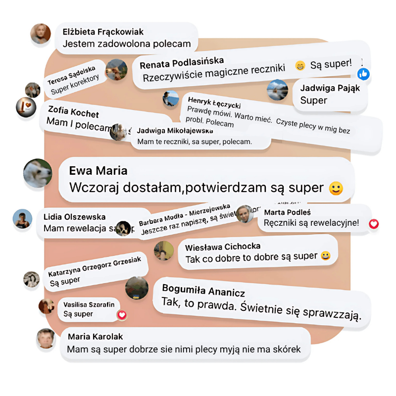 Już po pierwszej kąpieli skóra jest wyraźnie gładsza i lepiej chłonie balsam. Ręcznik szybko schnie, więc masz świeże, higieniczne akcesorium następnego dnia.
